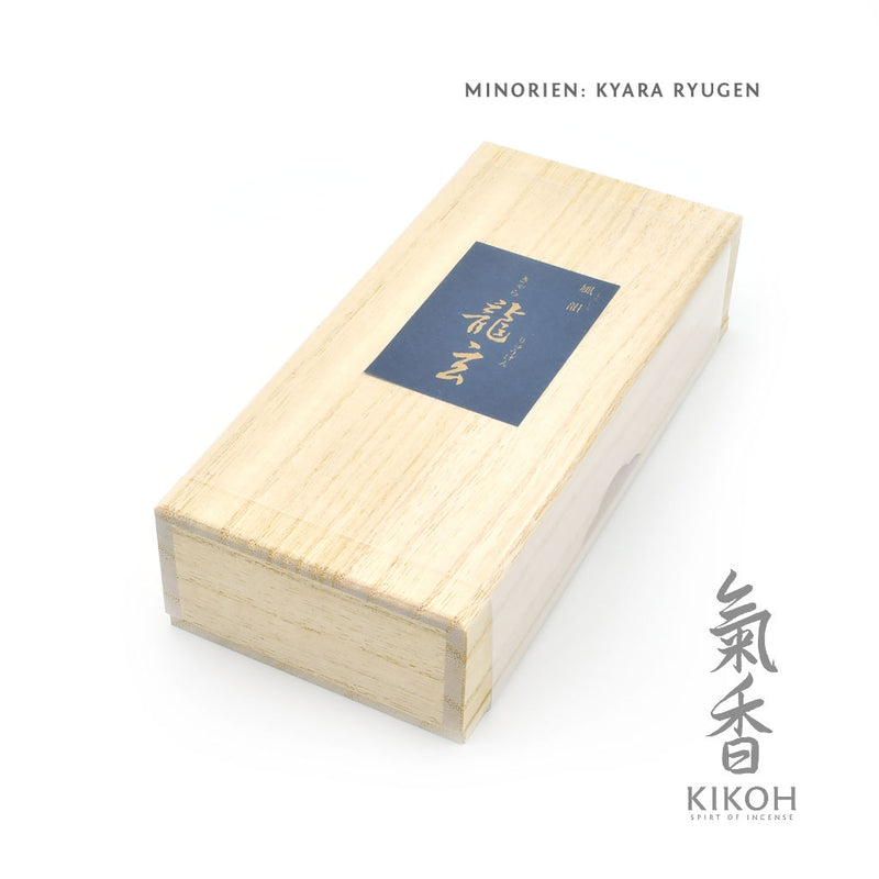 Intense, elegant, aged, and mysterious, Minorien's masterpiece Kyara Ryugen (Mysterious Dragon) is renowned for its unique rich “wet” impression of pure kyara. A gem of an incense representing the ultimate fragrance created by nature, Kyara Ryugen provides an unparalleled experience with this special fragrant wood, like the viewing of a dragon cloud at sunset.